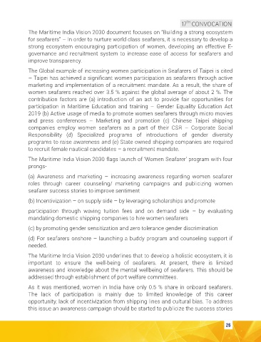 (a) Awareness and marketing – increasing awareness regarding women seafarer