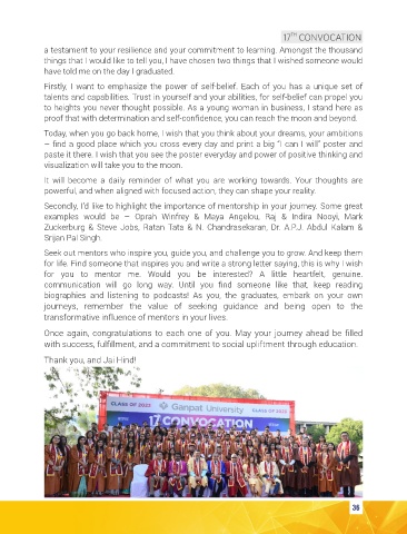 Firstly, I want to emphasize the power of self-belief. Each of you has a unique set of