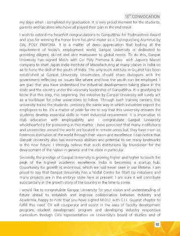club education with employability and I congratulate Ganpat University