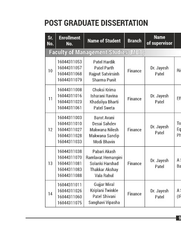 F F aculty of Management Studies (MBA)