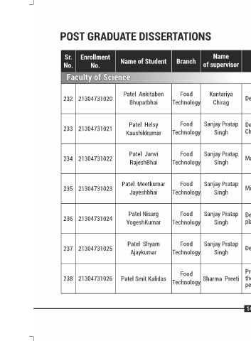 No. No. Name of Student Branch of supervisor Research/Project