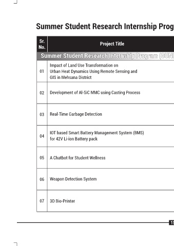 Summer Student Resear ch Internship Pr ogram (GUNI-SSRIP)