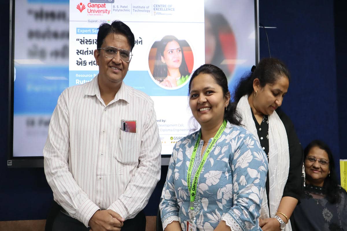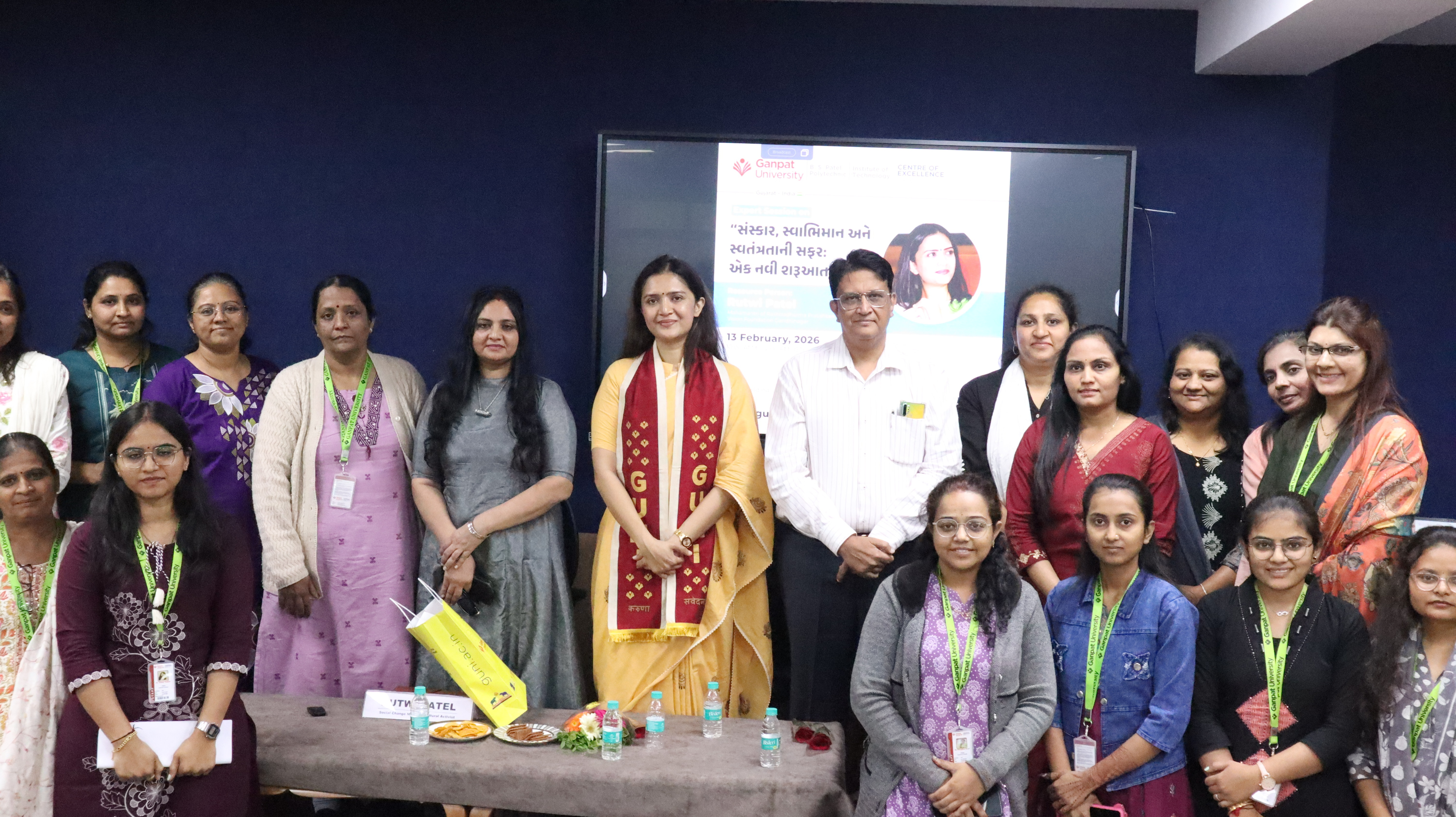 On 13 February 2026, the Women Development Cell of the Faculty of Diploma Engineering, Ganpat University successfully organized an inspiring seminar on the theme “Sanskar, Self-Respect and the Journey of Freedom: A New Beginning.” The session was led by Ms. Rutwi Patel, a renowned social change maker and cultural activist, who shared powerful insights on values, dignity, and women’s empowerment in today’s evolving society. With the enthusiastic participation of 250 students, the seminar created a vibrant platform for reflection, awareness, and motivation. The event encouraged young minds to embrace cultural roots while confidently shaping their own independent futures, marking it as a meaningful and impactful beginning toward personal and social growth.