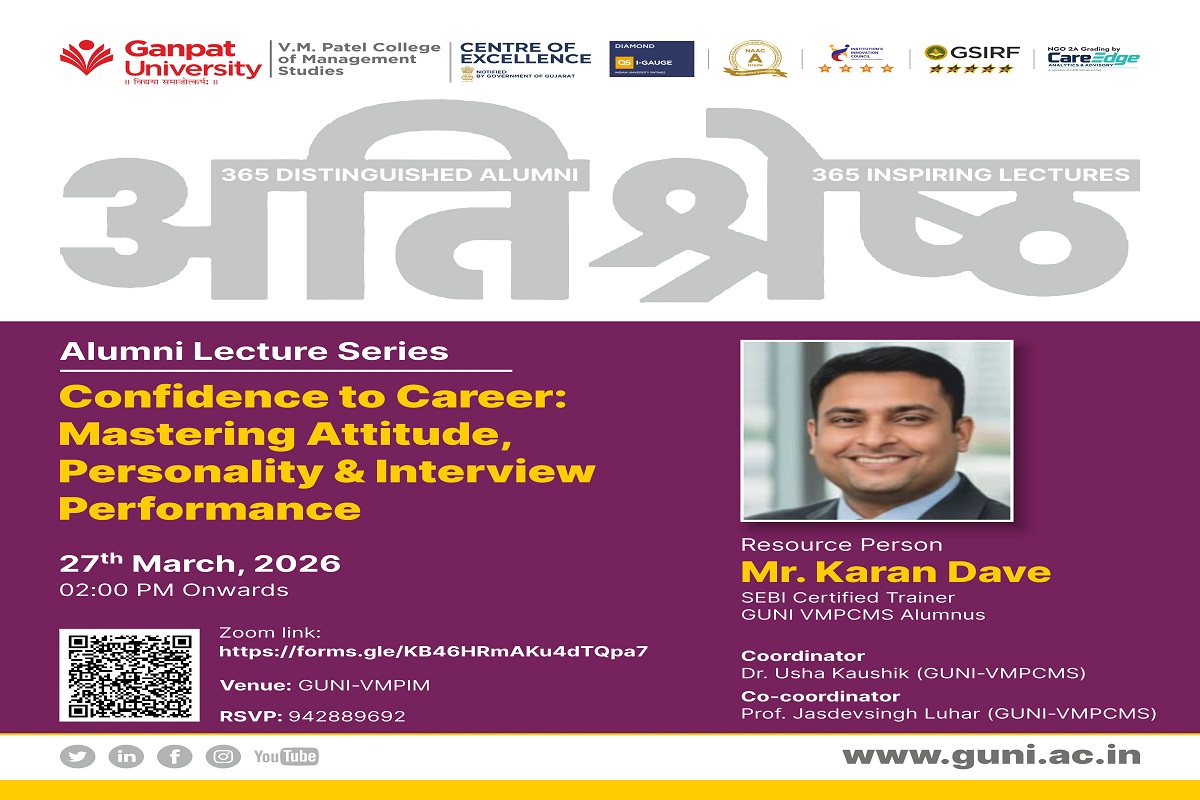 Ganpat University proudly presents 𝐑𝐨𝐣𝐠𝐚𝐫 𝐒𝐞𝐭𝐮 – 𝐌𝐞𝐠𝐚 𝐉𝐨𝐛 𝐅𝐚𝐢𝐫 𝟐.𝟎...