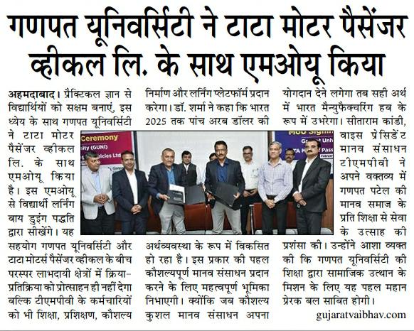 Ganpat University signed MoU with TATA Motors Passenger Vehicles Ltd.